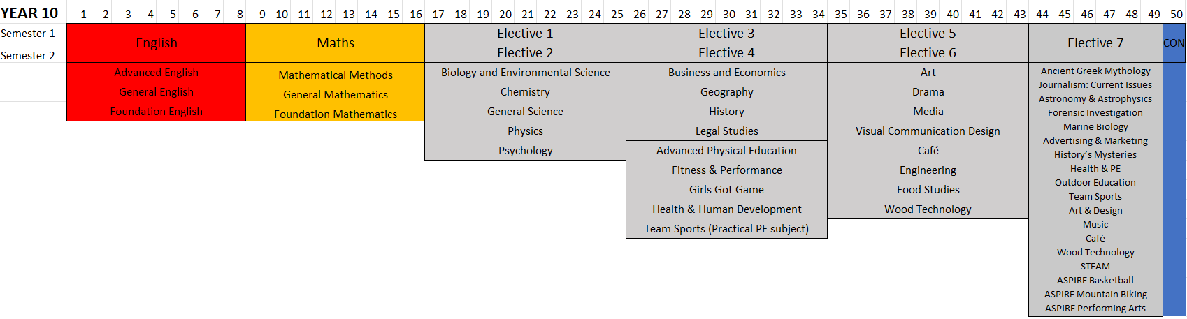The focus of our Year 10 program is to provide students with as much choice as possible. We aim to provide an enjoyable, relevant, broad and rigorous teaching and learning program that provides both preparation for Year 11 and 12 as well as the training and guidance for future careers. There is an opportunity for students to accelerate their studies with a VCE or VET subject.